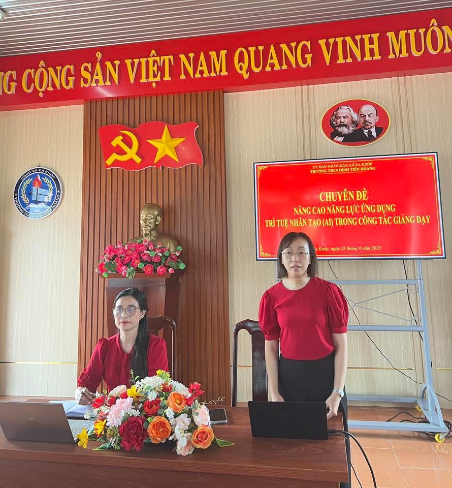 Nhằm nâng cao năng lực công nghệ thông tin cho đội ngũ giáo viên và đáp ứng yêu cầu chuyển đổi số trong giáo dục, Trường THCS Đinh Tiên Hoàng đã tổ chức buổi tập huấn chuyên đề: “Nâng cao ứng dụng trí tuệ nhân tạo (AI) trong công tác giảng dạy” cho toàn thể cán bộ, giáo viên, nhân viên vào ngày 23/9/2025.